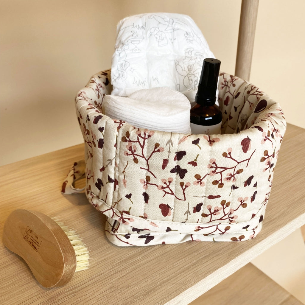 2er Set Stoffkörbchen. Perfekt für den Wickletisch oder Kleinigkeiten im Regal. Die Körbchen haben zudem eine Lasche damit sie bei Bedarf aufgehängt werden können.